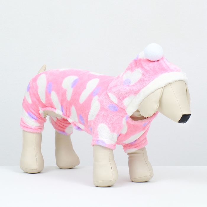 Комбинезон с капюшоном и рисунком в виде сердечек, который будет не только защищать вашего пушистого друга от холода, но и придавать ему неповторимый стиль - идеальное решение для модных собачек.