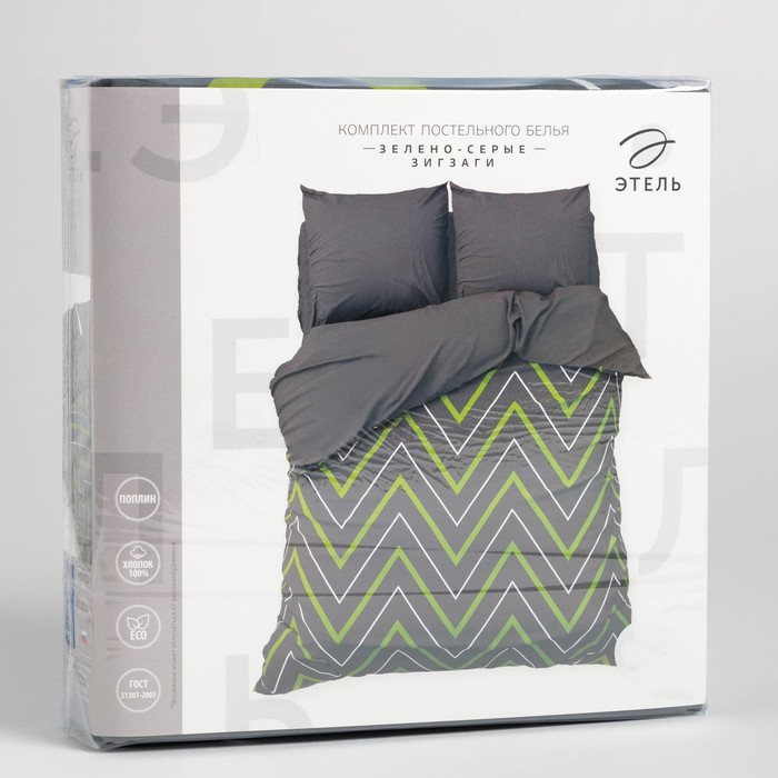 Постельное бельё Этель евро «Зелёно-серые зигзаги» 200х217, 240*220, 70х70-2 шт
