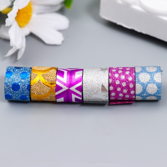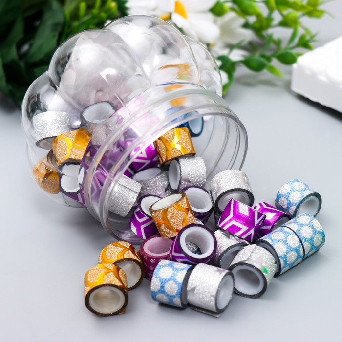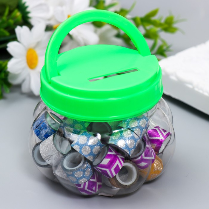 Клейкая лента пластик в банке медведь"Блеск с рисунками"(наб 40 шт)цвета МИКС 1,2смх1м 7х8х8