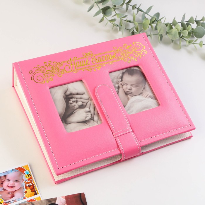 Фотоальбом на 200 фото с 2 местами под фото на обложке "Наше счастье", экокожа