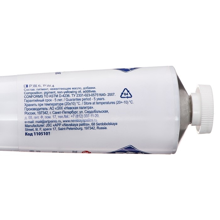 Краска масляная в тубе 120 мл, ЗХК "Мастер-класс", № 101, белила титановые, 1105101