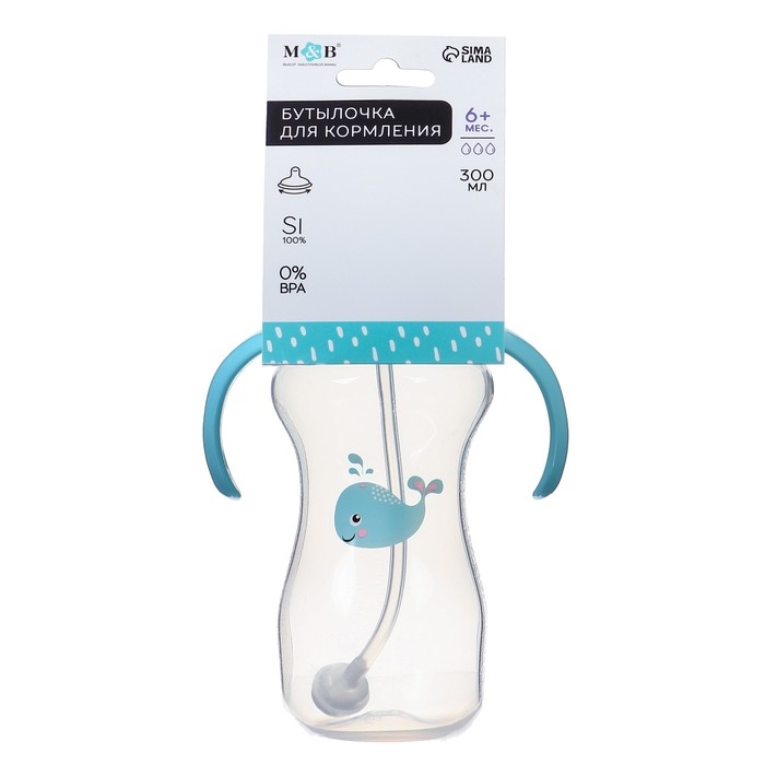 Бутылочка для кормления, ШГ Ø50мм,300 мл, +6мес., цвет голубой