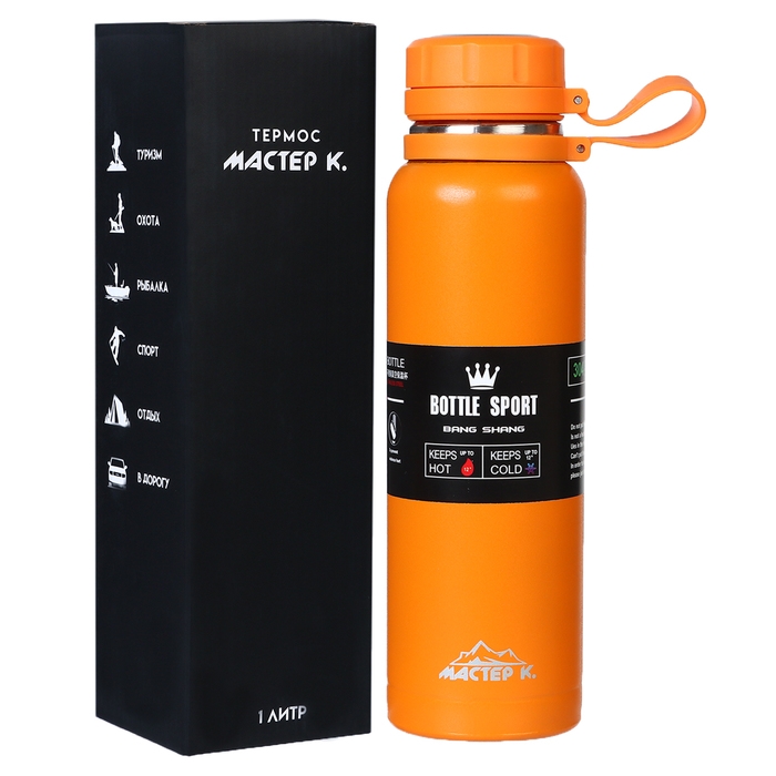 Термос, серия: Warm, "Мастер К", 1 л, сохраняет тепло до 8 ч, оранжевый