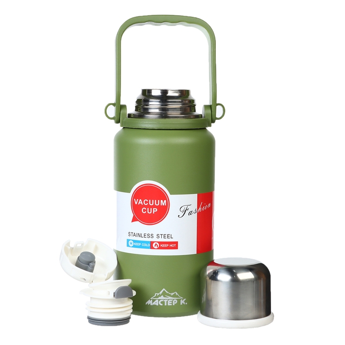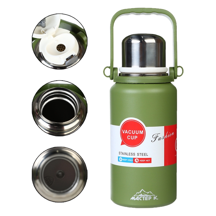 Термос, 1.1 л, Тропа "Мастер К", с кружкой, сохраняет тепло до 12 ч , зеленый