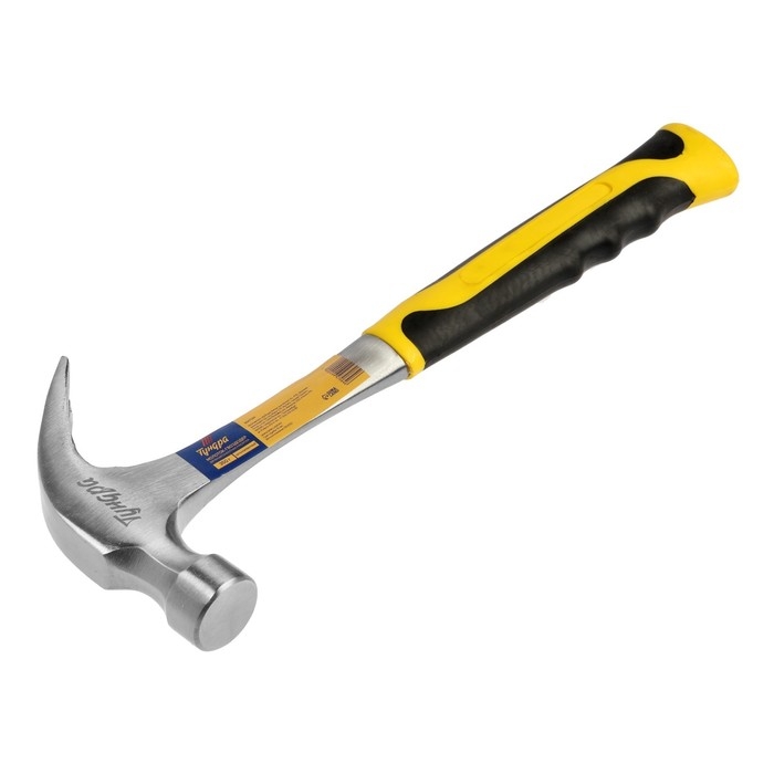 Молоток-гвоздодер ТУНДРА ПРОФИ, цельнокованый, двухкомпонентная рукоятка, 350 г