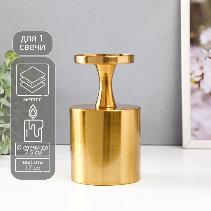 Подсвечник металл на 1 свечу d=7.5 см "Алессио" золото 9,5х9,5х17 см