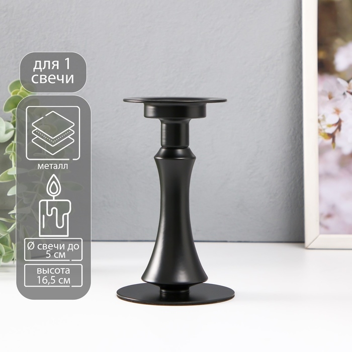 Подсвечник металл на 1 свечу d=до 5 см "Эмиль" черный 9х9х16,5 см