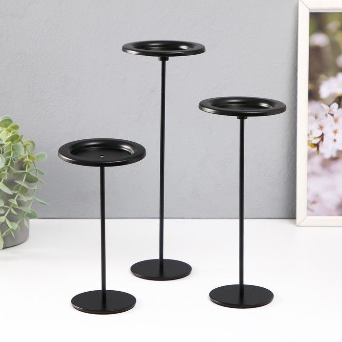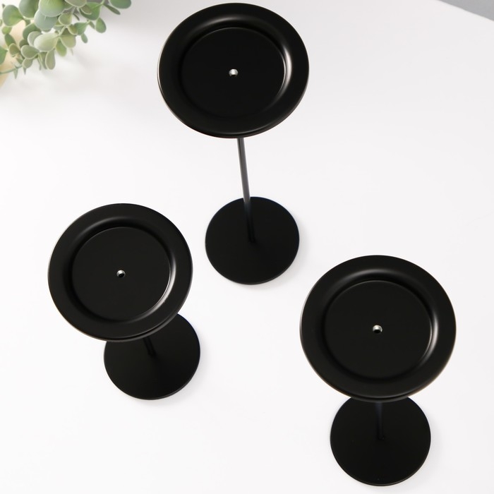 Подсвечник металл на 1 свечу d=до 8 см "Астри" набор 3 шт 10,5х10,5х22,5 17,5 12,5 см