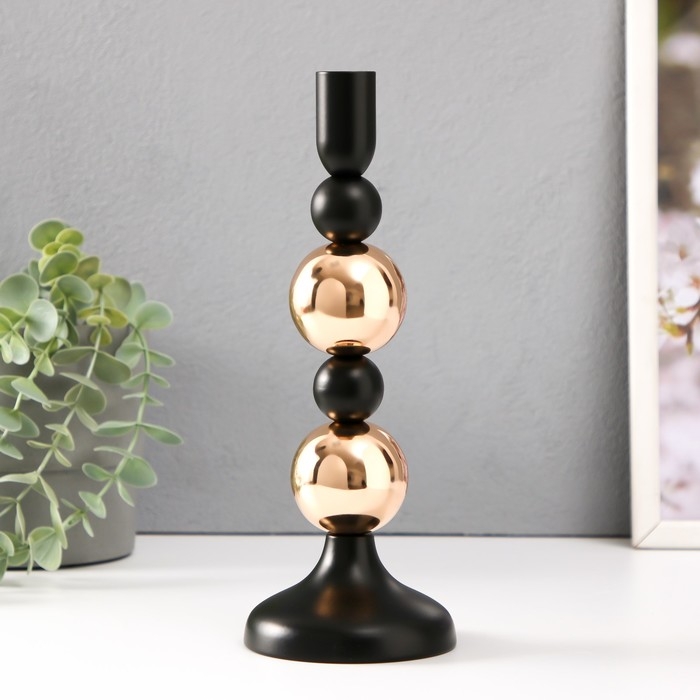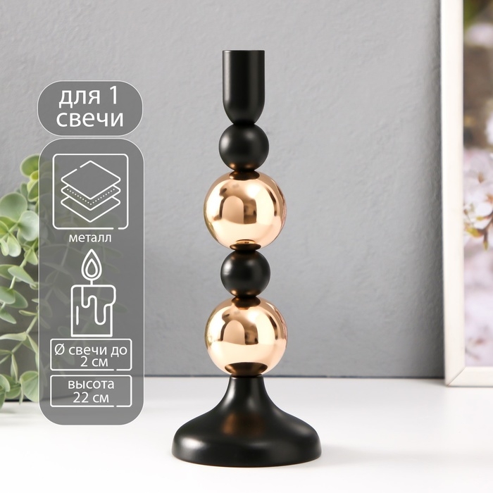 Подсвечник металл на 1 свечу d=2 см "Дельфуза. Два золотых шара" 10х10х22 см