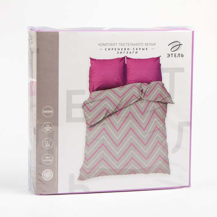 Постельное бельё "Этель" евро Сиренево-серые зигзаги 200х217 см, 240*220 см, 70х70 см - 2 шт., поплин 125 г/м²