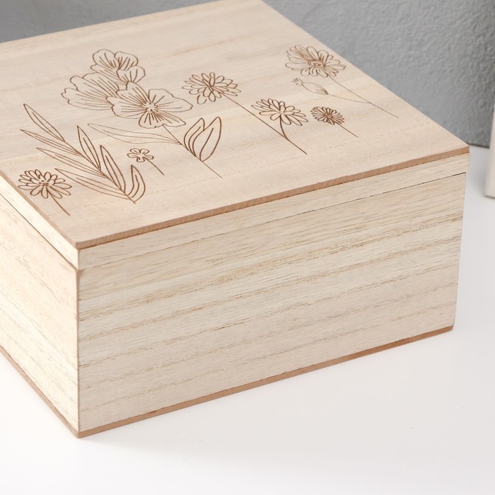 Шкатулка дерево "Полевые растения" 18х18х9 см