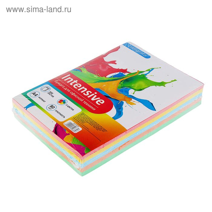 Бумага цветная А4, 500 листов Calligrata Интенсив, 5 цветов, 80 г/м²