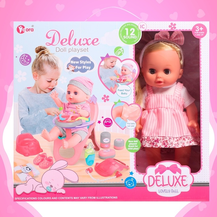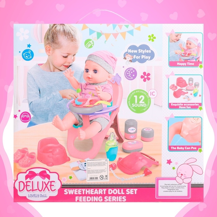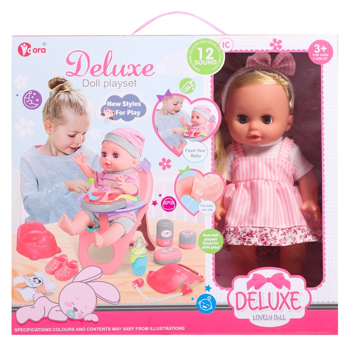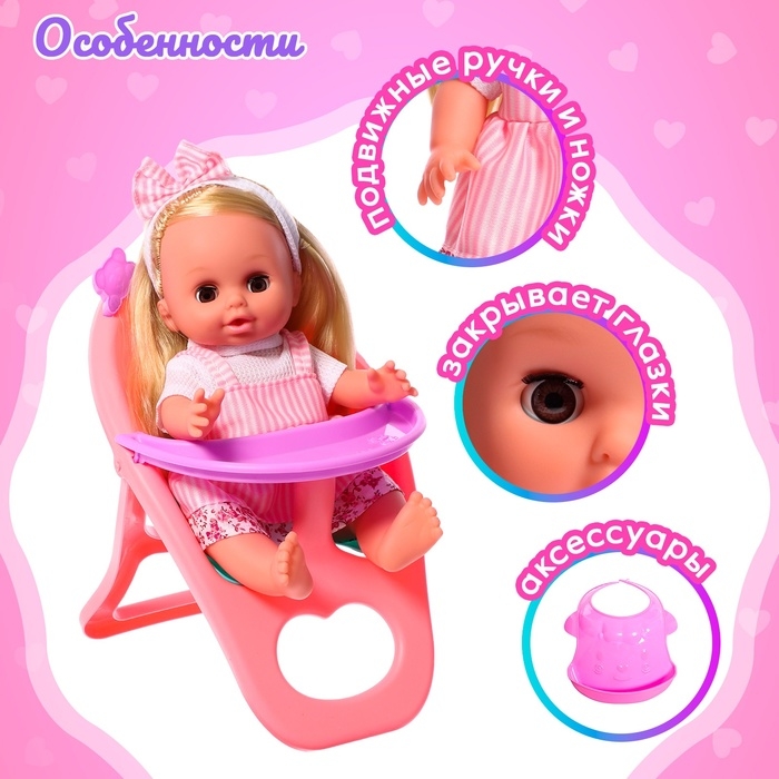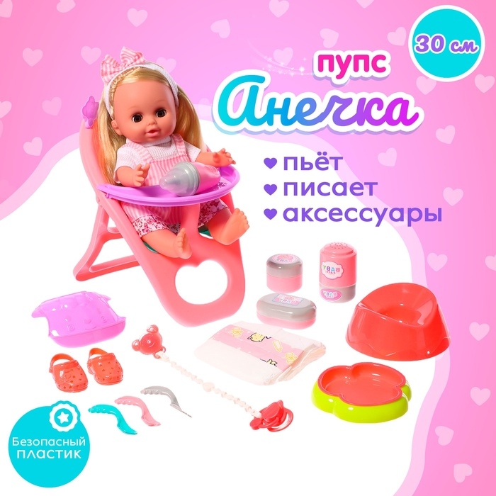 Пупс функциональный «Анечка», пьёт, писает, с набором аксессуаров, со стульчиком для кормления