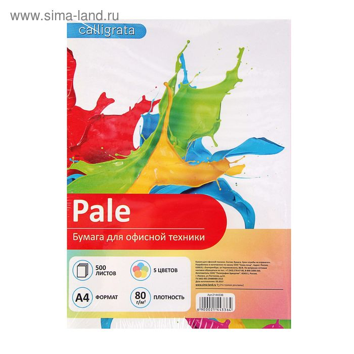 Бумага цветная А4, 500 листов Calligrata Пастель, 5 цветов, 80 г/м²