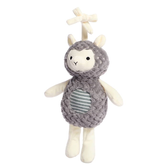 - Игрушку можно крепить к кроватке. Длина завязок — 22 см.