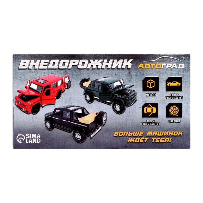 Металлическая машина «Внедорожник» подарит ребёнку незабываемые впечатления! Автомобиль готов мчаться на бешеной скорости через непроходимые леса, чтобы достичь намеченной цели. Стать обладателем автомобиля с ярким дизайном и проработанными элементами захочет как ребёнок, так и взрослый коллекционер.