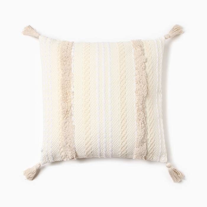 Наволочка декоративная Этель бохо Line 45х45 см, цвет бежевый, хлопок