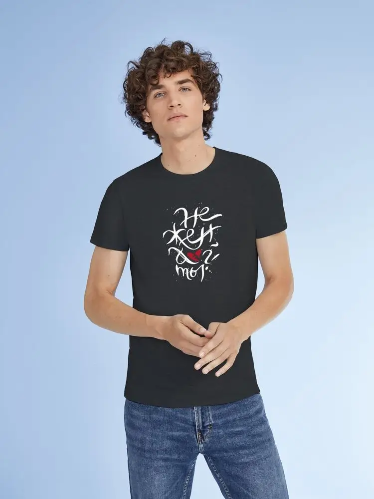 Футболка «Нежен», черный меланж, размер M