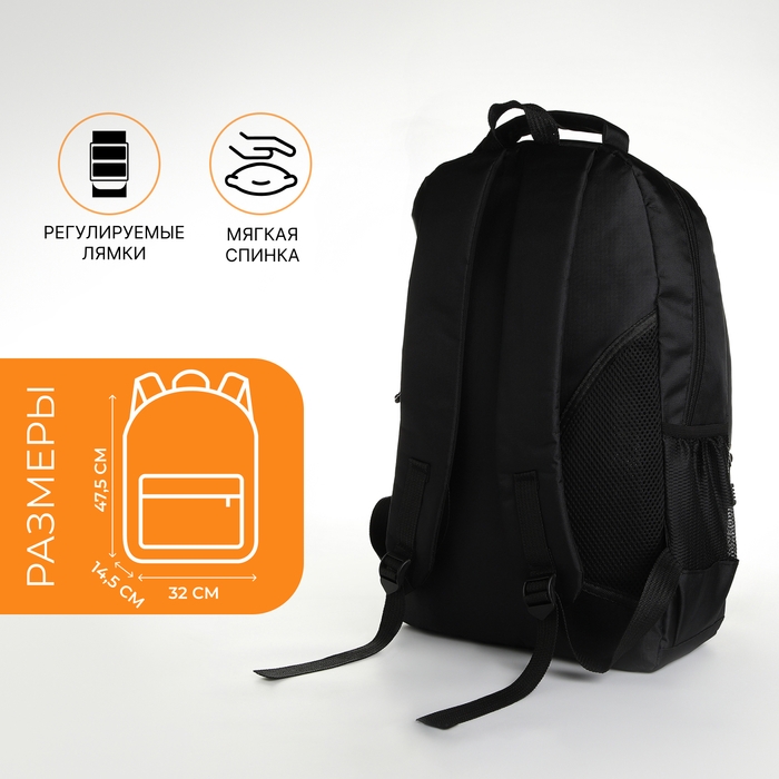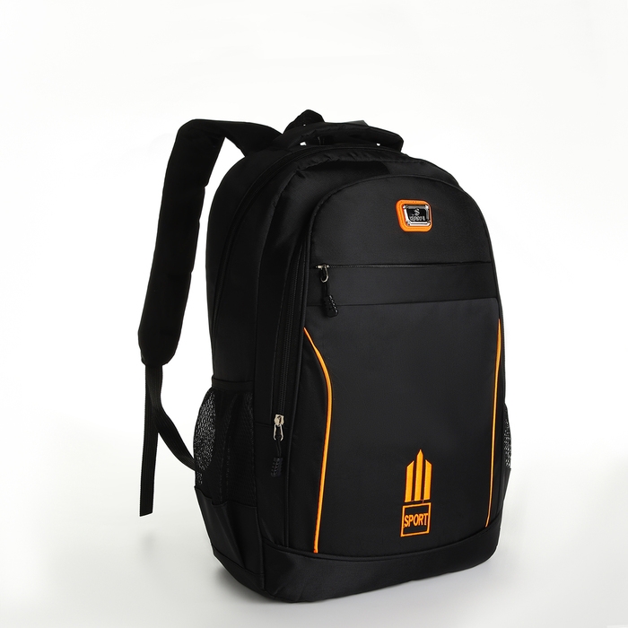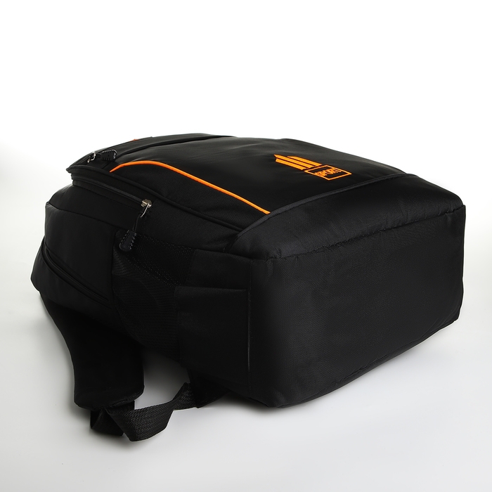 Рюкзак школьный из текстиля на молнии, 4 кармана, цвет чёрный/оранжевый