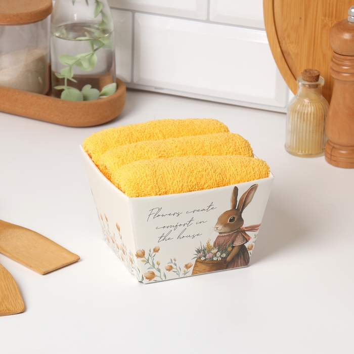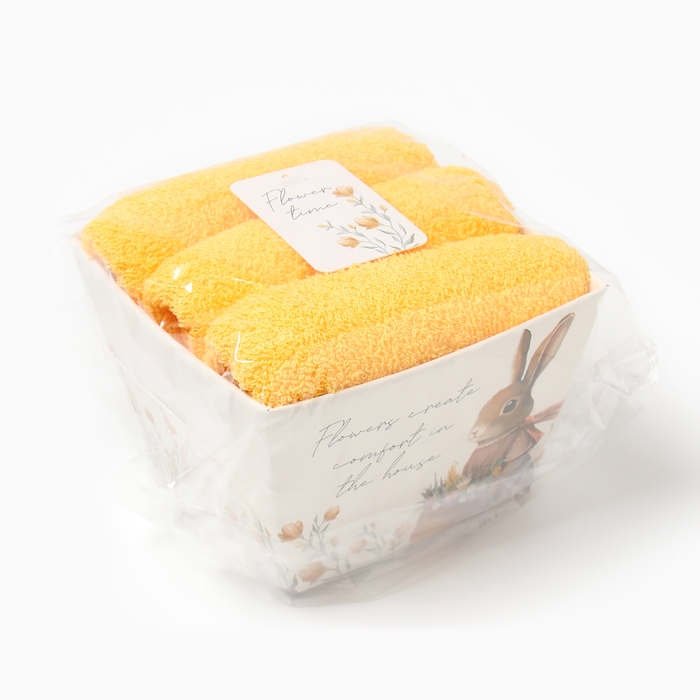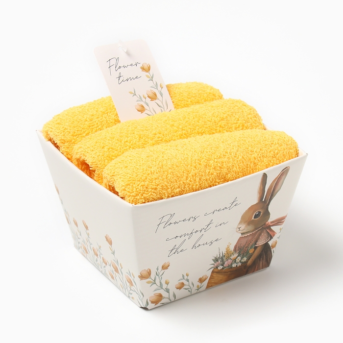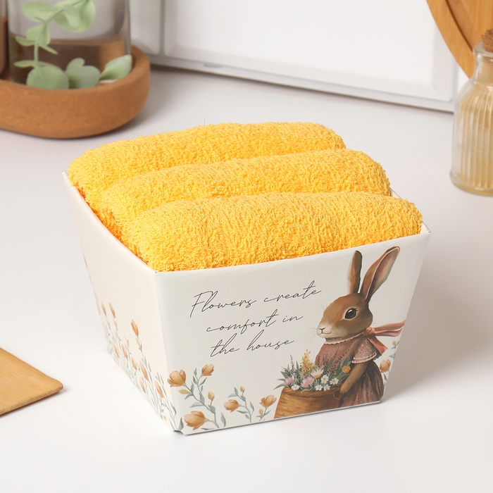 Набор полотенец Этель "Кролик с цветами" 35х50 см - 3 шт, 100% хл, махра 340 г/м2