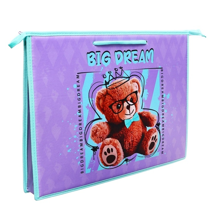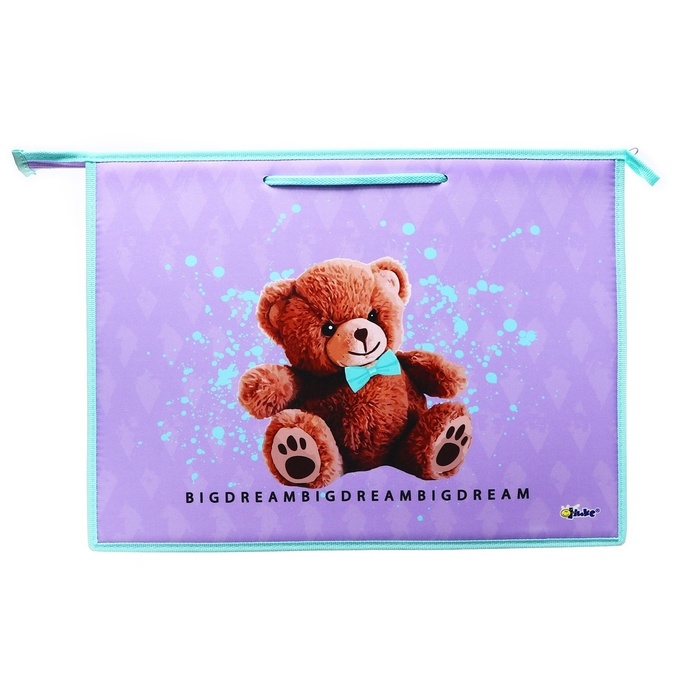 Папка для чертежей и рисунков A3, 470 х 345 х 50 мм, с ручками, пластик/текстиль, молния сверху, ПР 3 -20 "Милый мишка" 72692