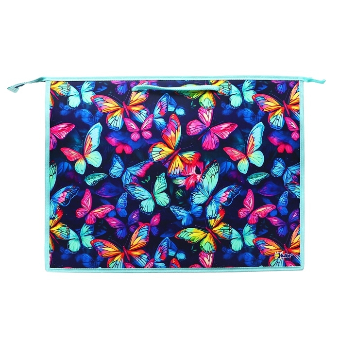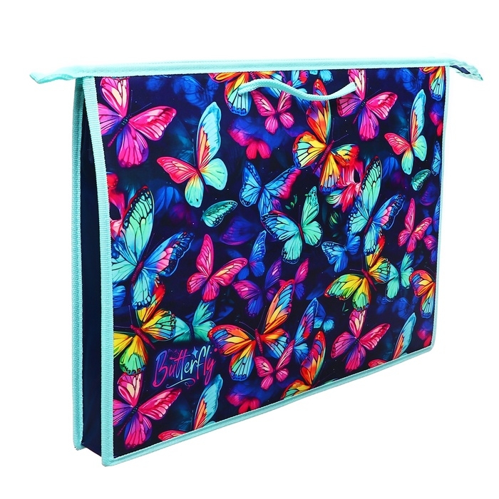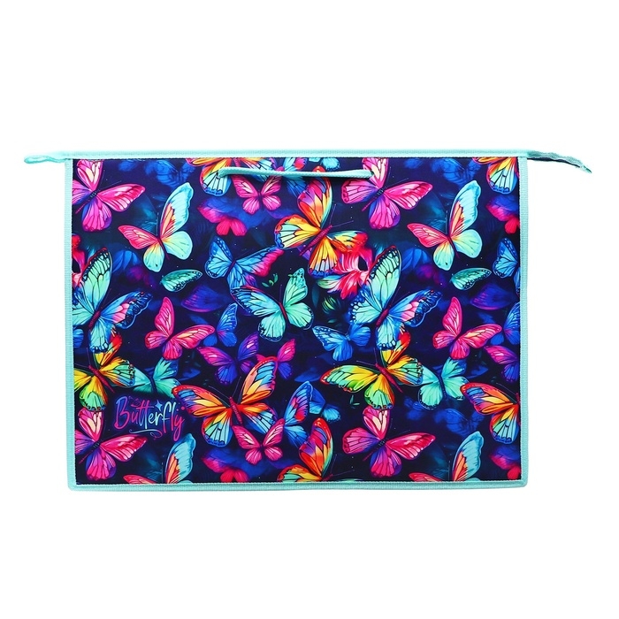 Папка для чертежей и рисунков A3, 470 х 345 х 50 мм, с ручками, пластик/текстиль, молния сверху, ПР 3 -20 "Неон бабочки" 72689