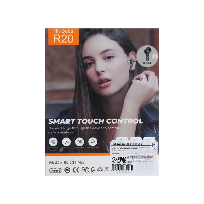 Наушники беспроводные R20, TWS, вкладыши, BT 5.3 , 30/200 мАч, шумоподавление, малиновые