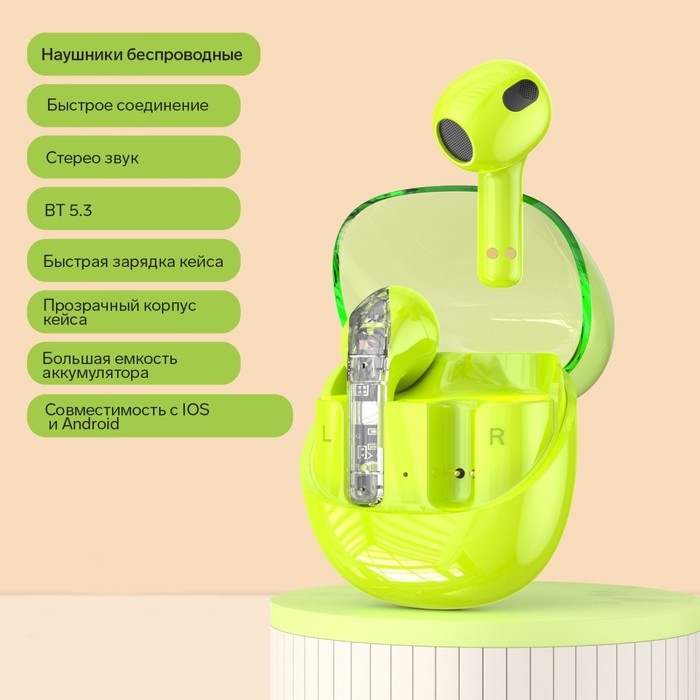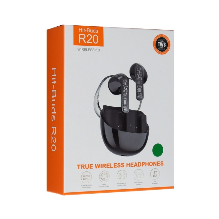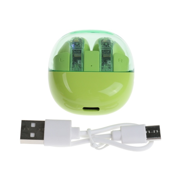 Наушники беспроводные R20, TWS, вкладыши, BT 5.3 , 30/200 мАч, шумоподавление, зелёные