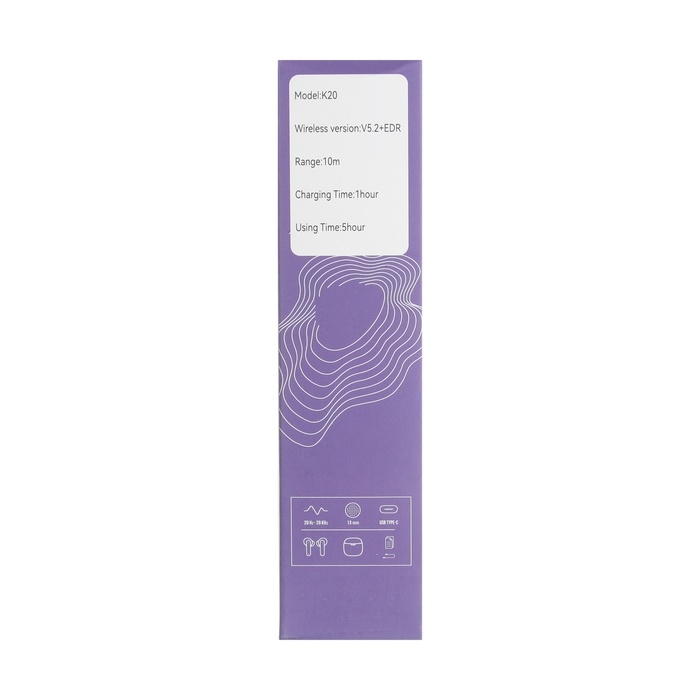 Наушники беспроводные K20, TWS, вкладыши, BT 5.0, 35/260 мАч, прозрачные, чёрные