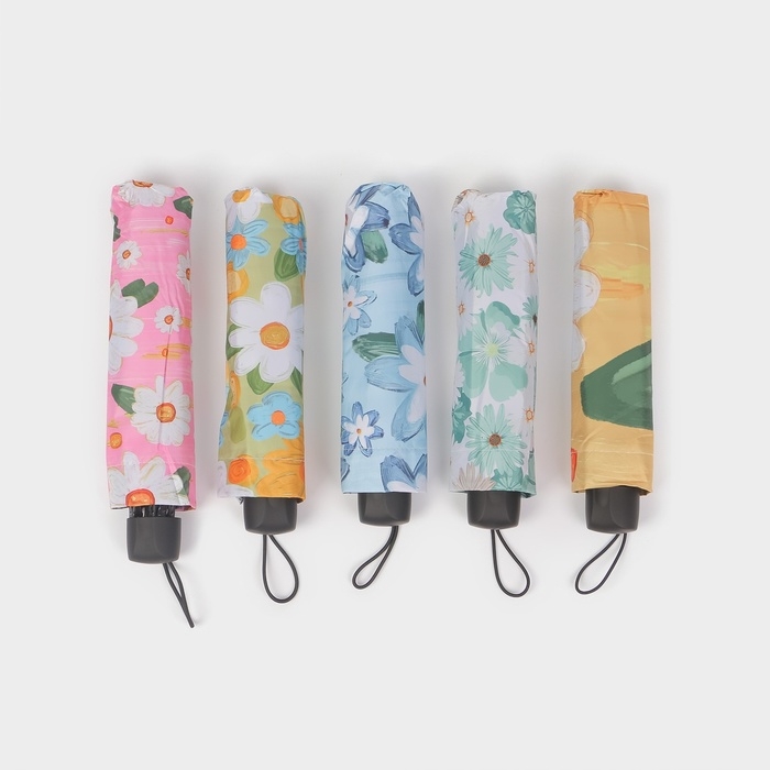 Зонт механический «Цветочный букет», эпонж, 4 сложения, 8 спиц, R = 49/55 см, D = 110 см, цвет МИКС