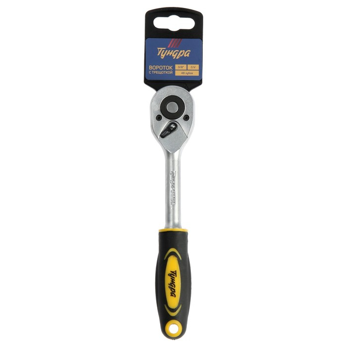 Вороток с трещоткой ТУНДРА, CrV, квадрат 3/8", 2К рукоятка, 48 зубьев, 200 мм