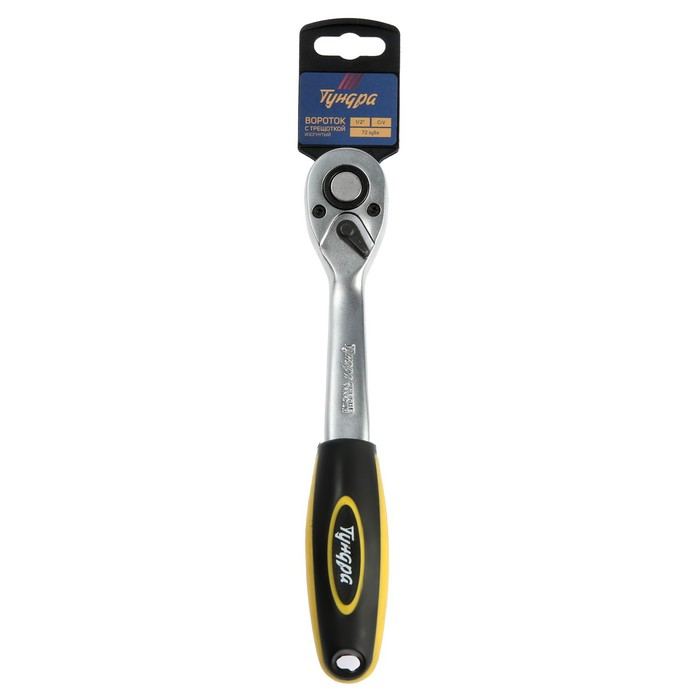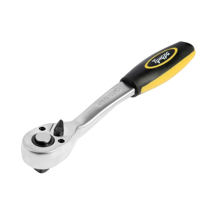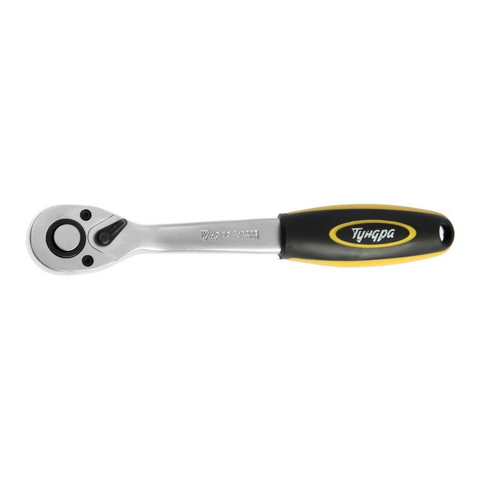 Вороток с трещоткой ТУНДРА, CrV, квадрат 1/2", изогнутая 2К рукоятка, 72 зубца, 250 мм