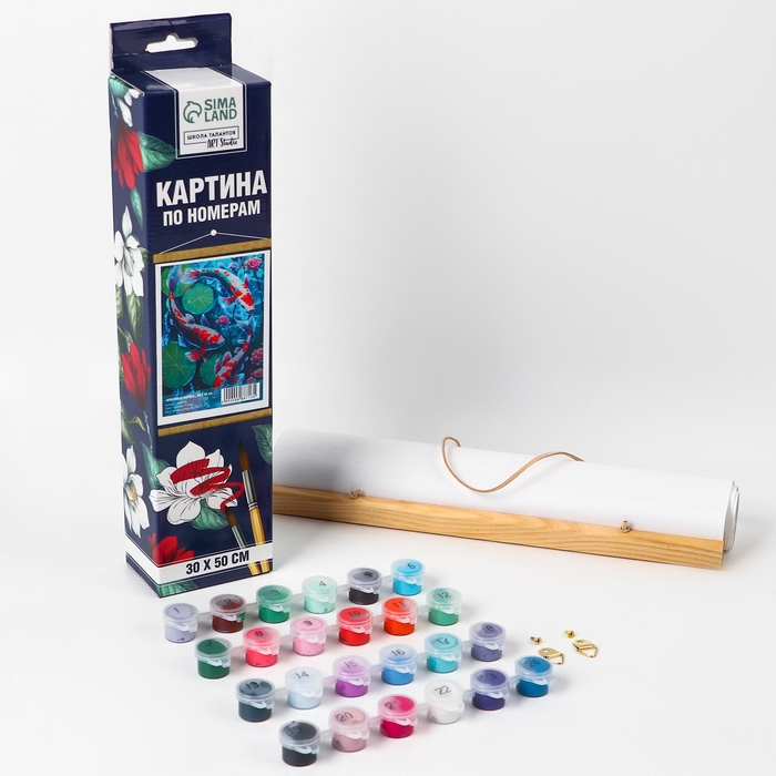 Картина по номерам панно «Красивые карпы», 30 х 50 см понравится и детям, и взрослым.