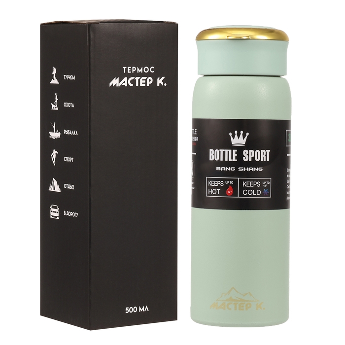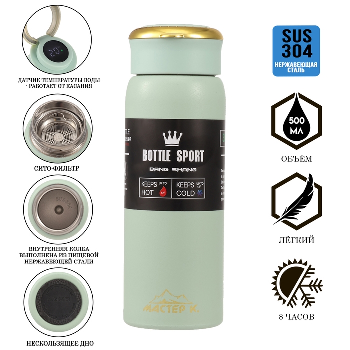Термос, серия: Traveller, "Мастер К", с термометром, 500 мл, сохраняет тепло до 8 ч, зеленый