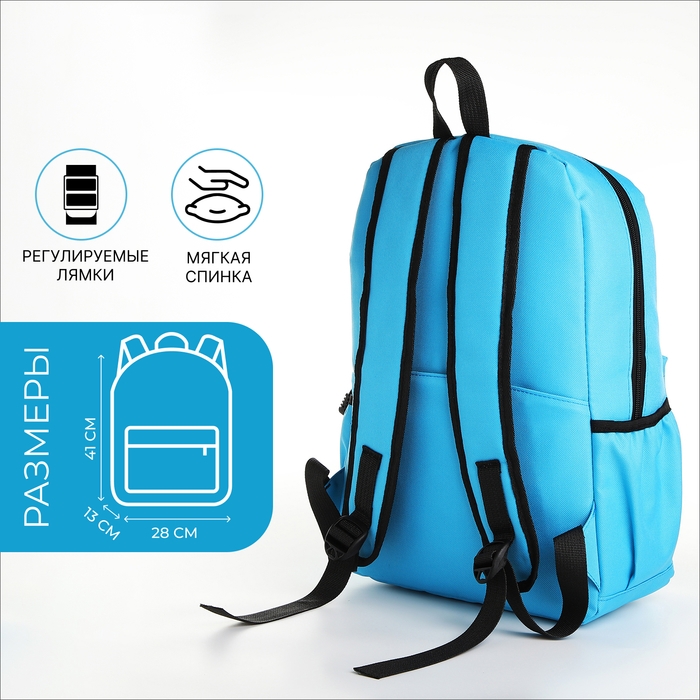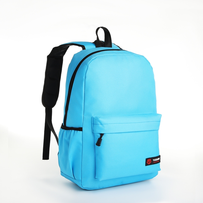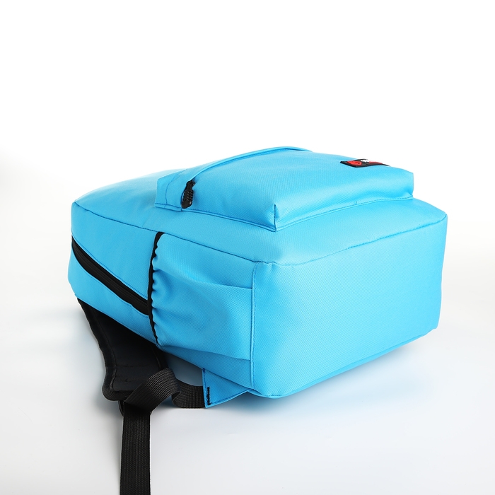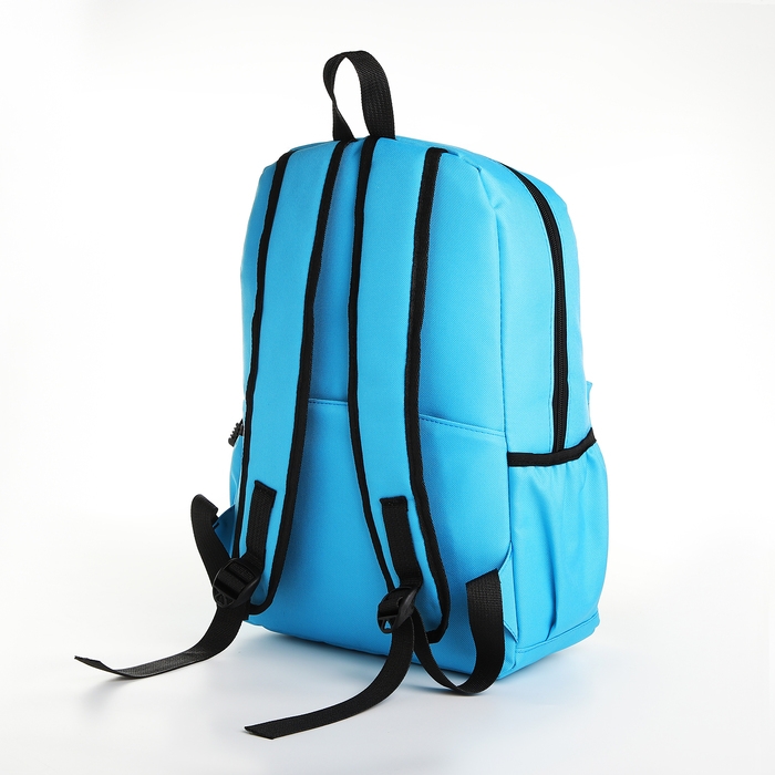 Рюкзак школьный на молнии, 4 кармана, цвет голубой