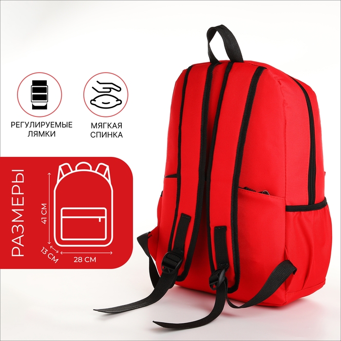 Рюкзак школьный на молнии, 4 кармана, цвет красный