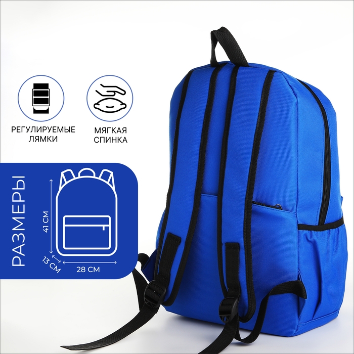 Рюкзак школьный на молнии, 4 кармана, цвет синий