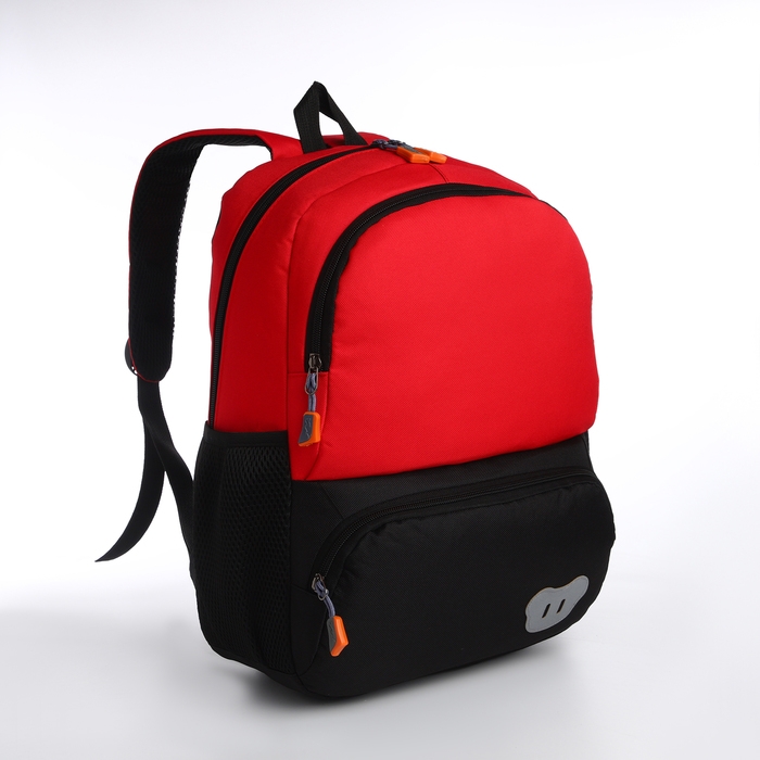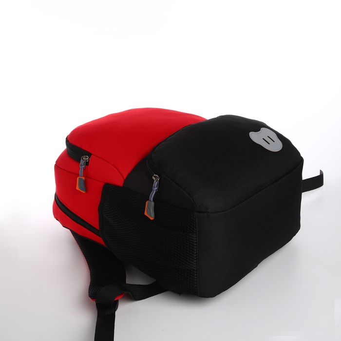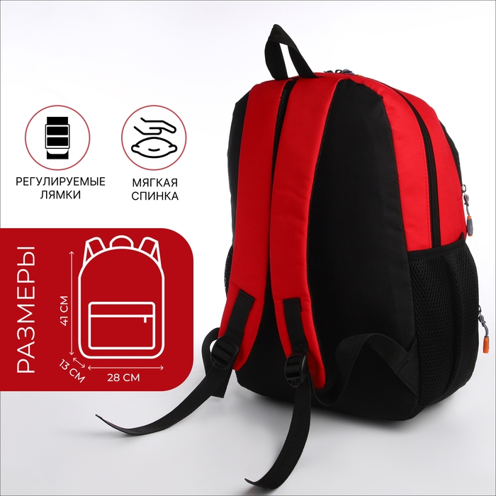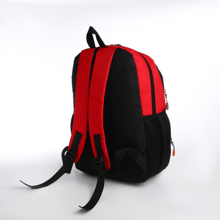 Рюкзак школьный, 2 отдела молнии, 3 кармана, цвет чёрный/красный
