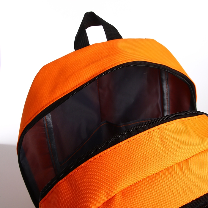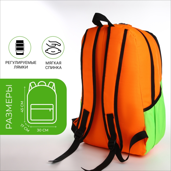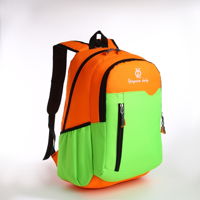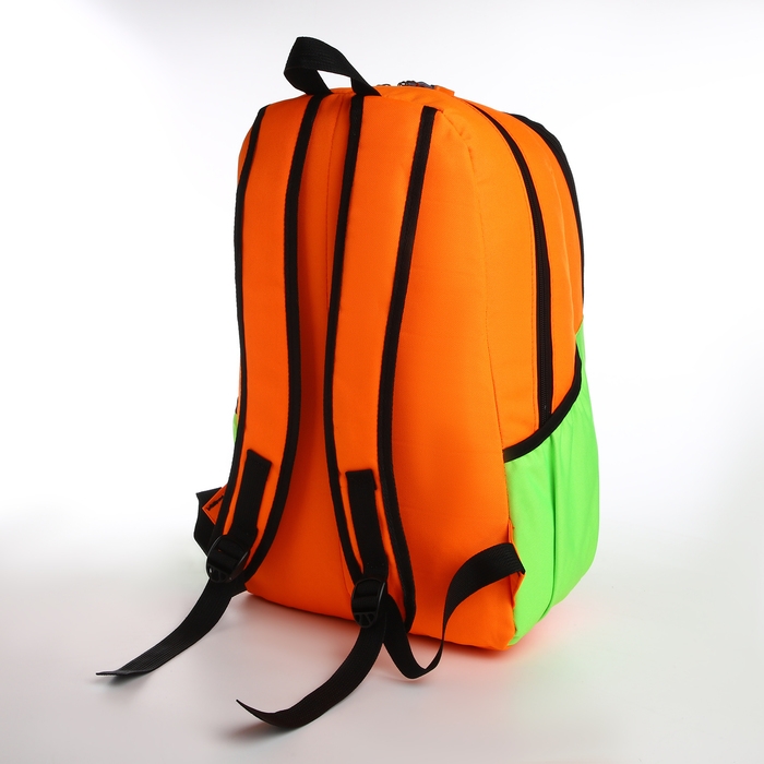 Рюкзак школьный, 2 отдела на молнии, 3 кармана, цвет зелёный/оранжевый