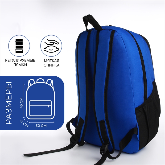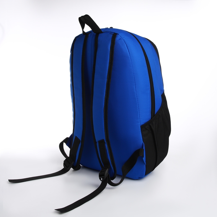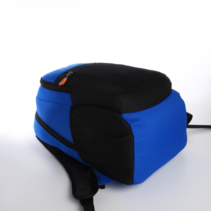 Рюкзак школьный, 2 отдела на молнии, 3 кармана, цвет чёрный/синий