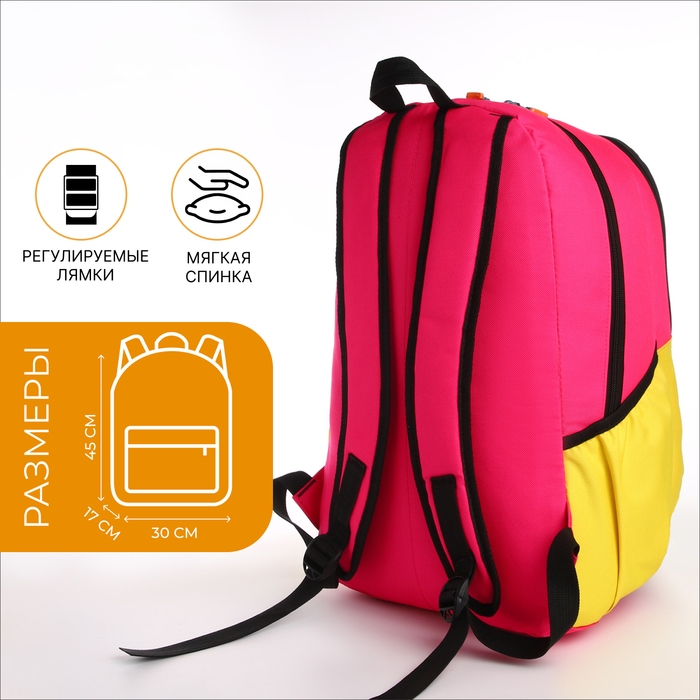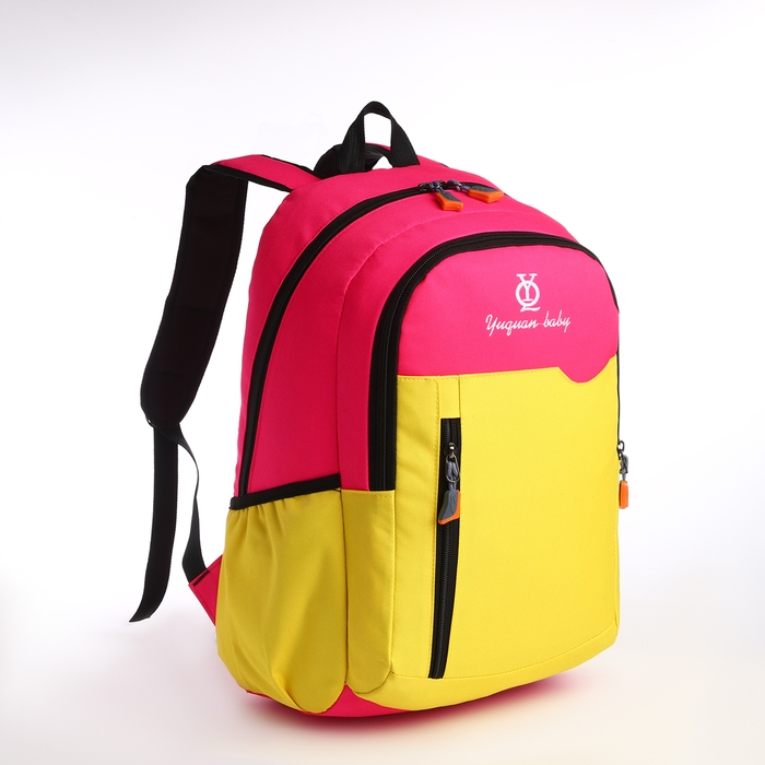 Рюкзак школьный, 2 отдела на молнии, 3 кармана, цвет розовый/жёлтый
