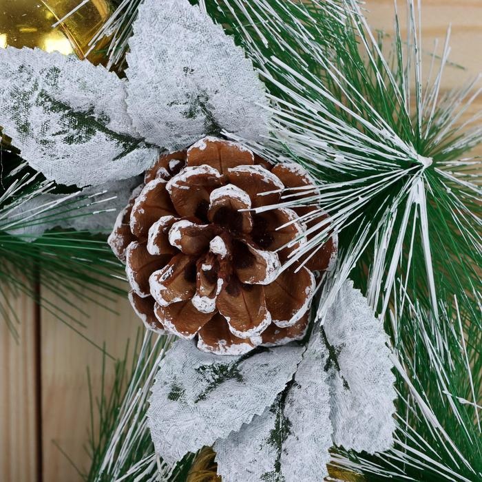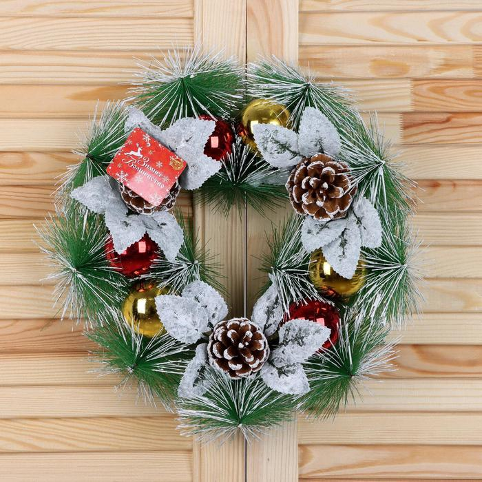 Венок новогодний d-27 см "Шишки и листики в инее"