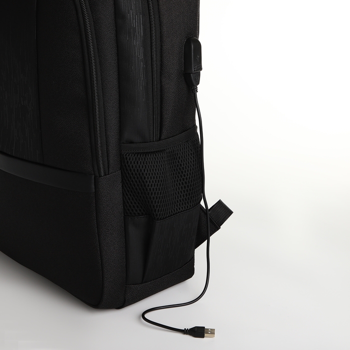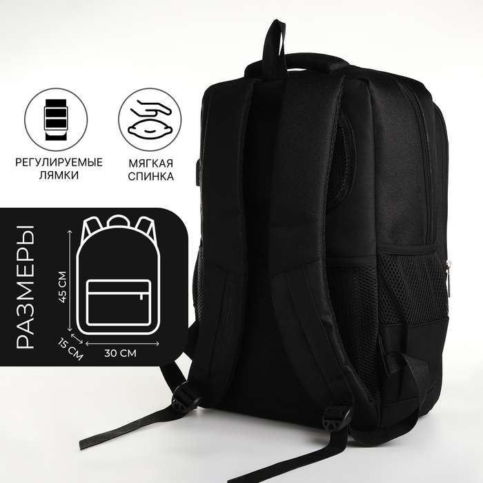 Рюкзак школьный, 2 отдела на молнии, 4 кармана, с USB, цвет чёрный