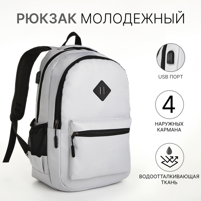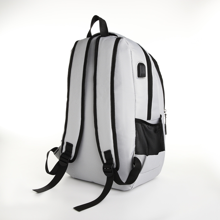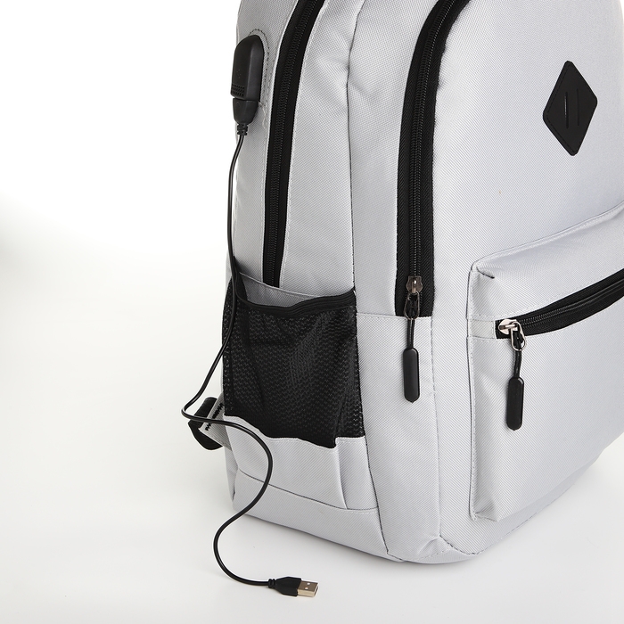 Рюкзак школьный, 2 отдела на молнии, наружный карман, с USB, цвет серый