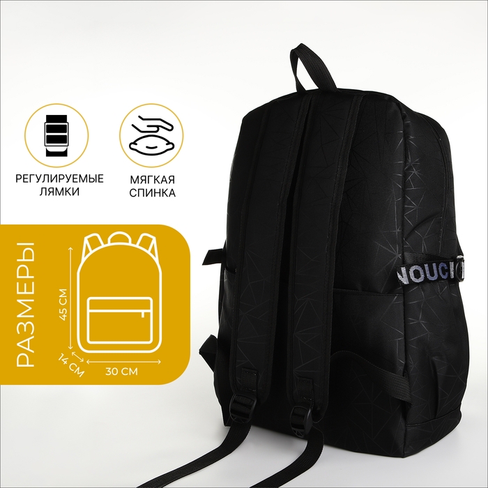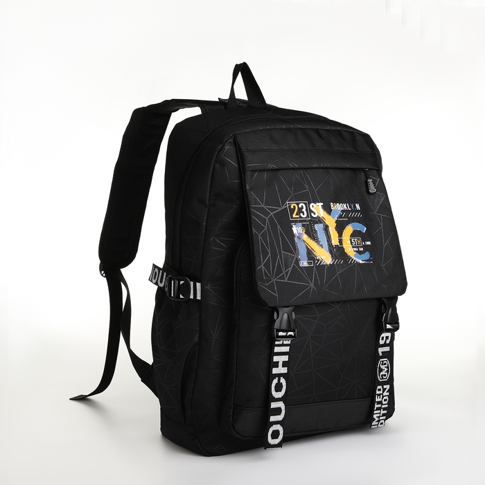 Рюкзак школьный на молнии, 3 кармана, цвет чёрный