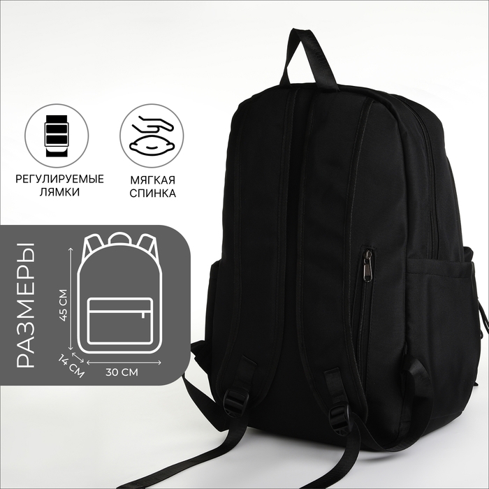 Рюкзак школьный на молнии, 5 карманов, цвет чёрный