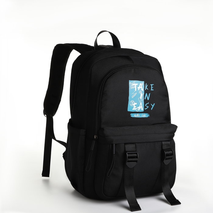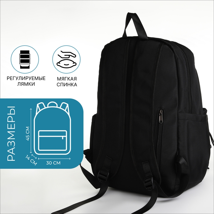 Рюкзак школьный на молнии, 5 карманов, цвет чёрный