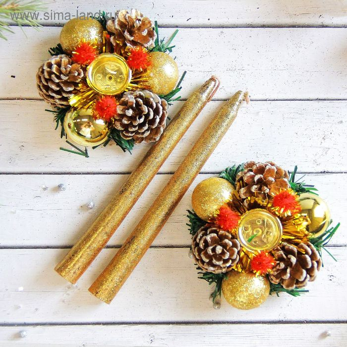 Свеча новогодняя с подсвечником "Золотые шары" (набор 4 шт) 4х13х17 см