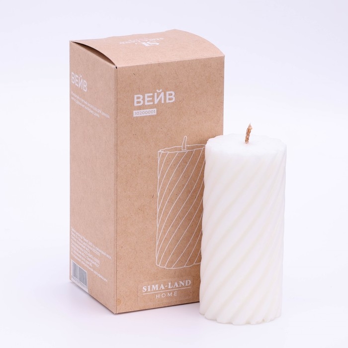 Свеча-цилиндр "Спираль",5х10 см, пальмовый воск, белая, 6 ч SimaHome