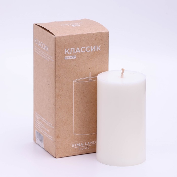 Свеча-цилиндр гладкая,6х10 см, пальмовый воск, белая, 20 ч Sima Home